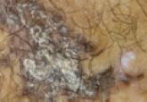 A 52-year-old obese woman presented with dark brown, scaly, nontender, andnonpruritic eruptions in both axillae that gradually had enlarged and...