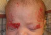 A 6-week-old male infant was referred to the dermatology department for evaluation of enlarging facial lesions noted shortly after birth. The...
