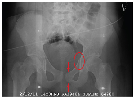CT was recommended to further define these areas (and was already pending to evaluate the patient’s abdomen). Fortunately, there were no fractures within the hip joint, just the nondisplaced rami fracture.