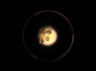 Approximately 1 year prior to presentation the patient completed a course of therapy comprised of repeat doses of ivermectin and permethrin for crusted scabies. He stated that the crusts had recurred shortly after treatment (Figure 1). The initial differential diagnosis included crusted scabies, pityriasis rubra pilaris, and psoriasis. Scraping from the interdigital web space (Figure 2) revealed multiple scabies mites, scabella, and ova (Figure 3). The patient was diagnosed with crusted scabies. Laboratory test results revealed a normal white blood cell count of 7300/μL, with an elevated eosinophil count of 1900/μL (reference range, <500/μL). Human T-lymphotropic virus 1 (HTLV-1) was found to be positive. Serum protein electrophoresis showed a moderate polyclonal increase in gamma globulins. Treatment was promptly initiated with permethrin cream 5% applied to the whole body for a total of 2 treatments that were administered 7 days apart. Ivermectin also was started at 200 μg/kg and was given on days 1, 7, 14, and 29. Salicylic acid cream 25% was applied daily to help hasten resolution of the crusts.