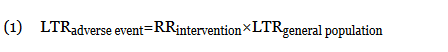 The use of this approximation overestimates the LTR of an event. From a patient perspective, this approach is conservative. If prior LTR values were available, such as the LTR of automobile injury, automobile death, or other intervention, they were used without the need for calculation.