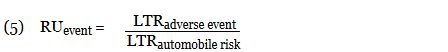 The LTRs of all adverse events were normalized to a unit comparator, using the LTR of an automobile injury as reference point, denoted as 1 risk unit (RU):