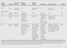 We noted several unifying clinicopathologic features among our patients and those previously reported in the literature (Table).3-7 Including our cases, our review yielded 13 GPPD patients ranging in age from 9 to 75 years, with a mean age of 49.1 years. Two of our patients—patients 1 and 3—were the youngest and oldest patients, respectively, among the cases we reviewed. The majority of the cases we reviewed included patients of East Asian descent (6 Taiwanese; 2 Japanese; 1 Korean) as well as 4 white patients. No distinctive gender predilection was apparent, as our review included 8 females and 5 males.