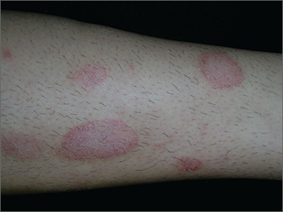 In this case, the FP prescribed 0.1% triamcinolone ointment to be applied twice daily until the lesions resolved. At a one-month follow-up appointment, the patient indicated that her legs were now smooth and she was happy that she could shave them again. The FP told her that it would be a good idea to use emollients after bathing to keep the skin moist in order to prevent future episodes of nummular eczema.