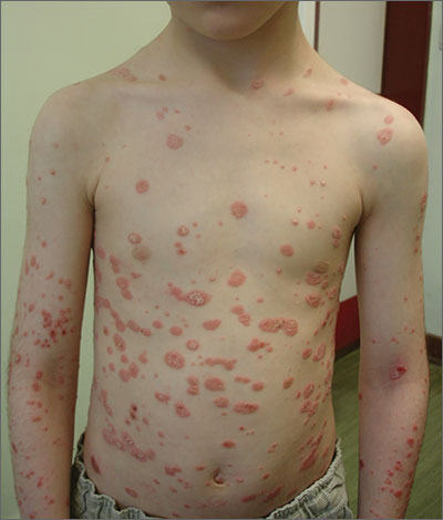 This case was adapted from: Matos RS, Torres T. Rapid onset rash in child. J Fam Pract. 2018;67:E1-E2.