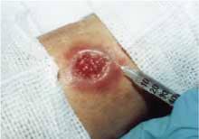 Perilesional infiltration of leishmaniasis lesion using meglumine antimonate.