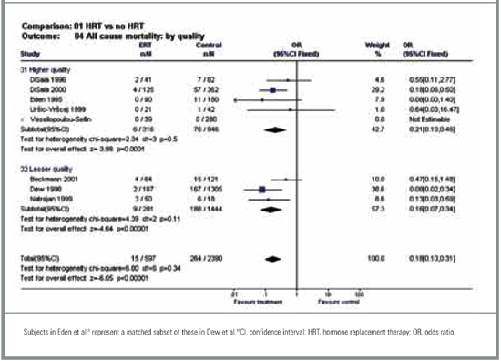 Graphic summary of studies of total mortality among users vs nonusers of estrogen replacement therapy