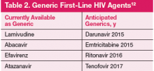 Prior authorizations are common for combination tablets, for example: tenofovir/emtricitabine (coformulated as Truvada). Some companies are restricting the medication to HIV treatment, and excluding HIV preexposure prophylaxis (PrEP) as an indication. By 2017, both agents recommended for PrEP will be generic. This may expand the utilization of PrEP secondary to reduced cost. Patent expirations will make medications cheaper, though likely less convenient. Unfortunately, providers may no longer have the freedom to choose coformulated tablets as entire regimens become available as generic. Currently many drug manufacturers will provide coformulated options through patient assistance programs if there is a denial for coverage by the insurance provider. Only time will tell if patients will have the option of one-pill-a-day regimens or if 3 to 5 generic tablets daily will become the new norm.Author disclosures