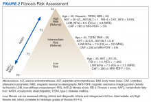 In the absence of easy-to-use validated tests, all patients with NAFLD need to be assessed with simple, noninvasive scores for the presence of clinically relevant liver fibrosis (F2-portal fibrosis with septa; F3-bridging fibrosis; F4-liver cirrhosis); those that meet the fibrosis criteria should receive further assessment usually only offered in a comprehensive NAFLD clinic.1 PCPs should focus on addressing 2 aspects related to NAFLD: (1) Does my patient have NASH based on clinical criteria; and (2) Is my patient at risk for clinically relevant liver fibrosis? PCPs are integral in optimal management of comorbidities and metabolic syndrome abnormalities with lifestyle and exercise interventions.