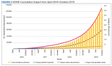 The cost avoidance calculation further excludes the effects of VIONE implementation on many other types of interventions. These interventions include, but are not limited to, changing from aggressive care to end of life, comfort care when strongly indicated; reduced emergency department visits or invasive diagnostic and therapeutic approaches, when not indicated; medical supplies, antimicrobial preparations; labor costs related to packaging, mailing, and administering prescriptions; reduced/prevented clinical waste; reduced decompensation of systemic illnesses and subsequent health care needs precipitated by iatrogenic disturbances and prolonged convalescence; and overall changes to prescribing practices through purposeful and targeted interactions with colleagues across various disciplines and various hierarchical levels.