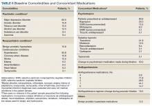 All veterans had at least 1 comorbid medical condition, and the majority had multiple medical comorbidities. All were taking multiple medical and psychiatric medications. More than 80% of veterans were taking antihypertensive agents at baseline (Table 6). Twenty-two of the 32 veterans were prescribed a VA/DoD PTSD guideline-recommended antidepressant.
