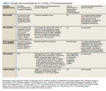 The novel coronavirus SARS-CoV-2 and resulting viral syndrome (COVID-19) was first reported in China during December 2019 and within weeks emerged in the US.1 Since it is a rapidly evolving situation, clinicians must remain current on best practices—a challenging institutional responsibility. According to LitCovid, a curated literature hub for tracking scientific information on COVID-19, there are > 54,000 articles on the subject in PubMed. Among these include venous thromboembolism (VTE) prophylaxis guidance from 4 respected thrombosis organizations/societies and the US National Institutes of Health.1-5