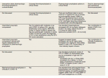 Well-established surgical and nonsurgical VTE thromboprophylaxis guidelines serve as the foundation for current COVID-19 thromboprophylaxis guidance.8,9 Condition specific guidance is extrapolated from small, retrospective observational studies or based on expert opinion, representing levels 2 and 3 evidence, respectively.1-5 Table 1 captures similarities and differences among COVID-19 VTE thromboprophylaxis recommendations which vary by time to publication and by society member expertise gained from practice in the field.