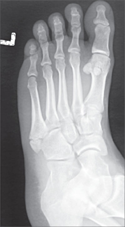 Photos and text for Photo Rounds Friday courtesy of Richard P. Usatine, MD. This case was adapted from: Chumley H. Metatarsal fracture. In: Usatine R, Smith M, Mayeaux EJ, et al, eds. Color Atlas of Family Medicine. 2nd ed. New York, NY: McGraw-Hill; 2013:611-614.
