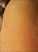 Although AGEP most commonly is triggered by β-lactam and macrolide antibiotics, AGEP also has been associated with chromium supplements,2 seasonings containing urushiol, and parasitic or viral infections.3 A multinational case-control study by Sidoroff et al4 showed no increased family or personal history of psoriasis in patients with AGEP; our patient also did not have a history of psoriasis.