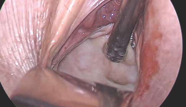 You can create a bit more space in which to dissect by injecting the bupivacaine/ epinephrine solution into the vaginal epithelium. This technique also ensures that the vaginal epithelial incisions won’t bleed.