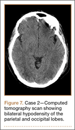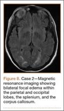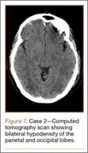 Posterior reversible encephalopathy syndrome, the cause of POVL diagnosed in the 2 patients in this case report, is a neurologic syndrome that differs significantly in its clinical presentation and pathophysiology from the more well-known etiologies. The precise pathophysiologic mechanism of the syndrome is yet to be elucidated. One theory revolves around the failure of cerebral vascular autoregulation. It postulates that intracerebellar hypertension leads to the extravasation of proteins and fluid, resulting in the characteristic vasogenic edema.16,17 The other equally discussed theory postulates that cerebellar vasospasm and subsequent hypoperfusion leading to cellular hypoxemia and ischemia may be responsible.18-20 Posterior reversible encephalopathy syndrome has been reported with increasing frequency, particularly in connection with hypertension, acute renal failure associated with malignancy, cytotoxicity, and corticosteroids, as well as preeclampsia, eclampsia, and autoimmune disorders.1-3,21-23 Traditionally, patients display a combination of different symptoms, including vision changes ranging from slightly decreased perception to complete blindness. Unlike retinal artery occlusion and ischemic optic neuropathy, the onset of vision loss often does not happen immediately after surgery and may occur several hours to days after surgery. Visual disturbance may progressively worsen if the medical cause for the syndrome is not determined and corrected.2,3 In contrast to other known etiologies of POVL, PRES has a relatively favorable prognosis if managed appropriately. Reported case series determined a resolution of the characteristic parieto-occipital vasogenic edema in 83% to 88% of all patients in follow-up neuroimaging after aggressive control of seizures and arterial hypertension.2-3