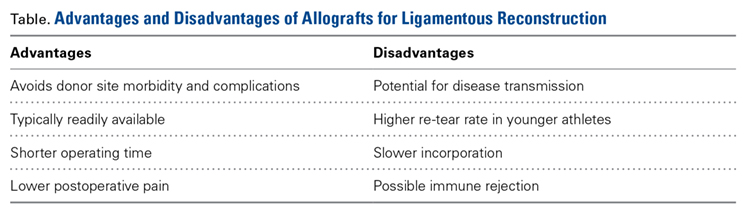 50. Lenehan EA, Payne WB, Askam BM, Grana WA, Farrow LD. Long-term outcomes of allograft reconstruction of the anterior cruciate ligament. Am J Orthop. 2015;44(5):217-222.