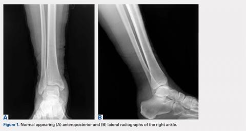 Review of her plain radiographs demonstrated no bony abnormalities, fractures, nor visible deformity (Figures 1A, 1B).